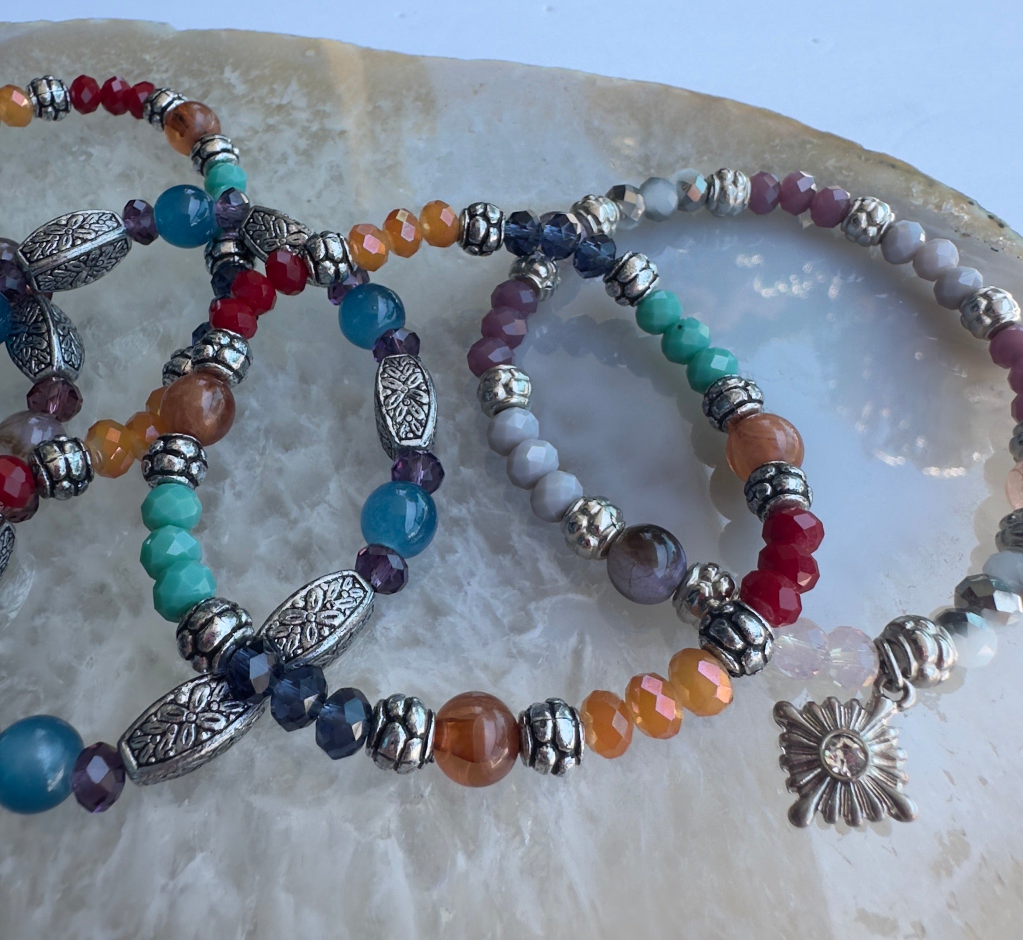 This chakra bracelet set embodies the bohemian lifestyle while serving as powerful healing jewelry. Each gemstone carries its own metaphysical properties, making this collection perfect for: